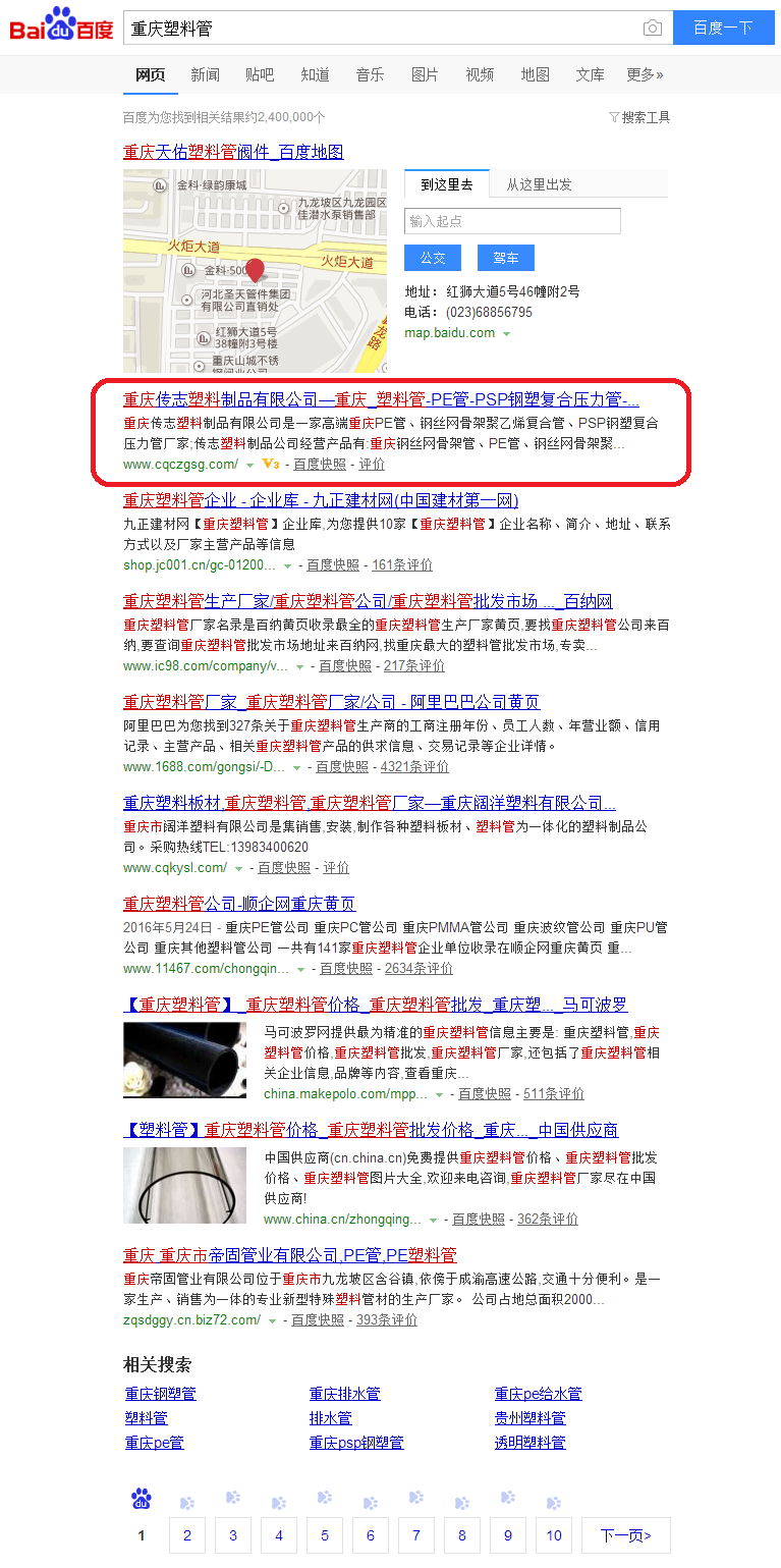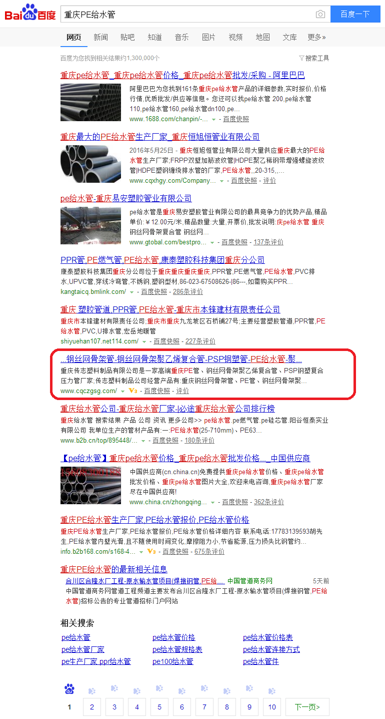 網絡推廣客戶公司簡介:重慶傳志塑料制品有限公司是在市場經濟飛速發(fā)展,行業(yè)產品越來越細分的情況下成立的,公司主要致力于,重慶PE管、鋼塑復合管、鋼絲網骨架管、PSP管的研發(fā)、銷售、加工。公司稟...